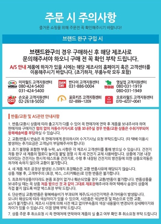 상품불량에 의한 반품, A/S, 품질보증 및 피해보상 등에 관한 사항은 소비자 분쟁해결기준(공정거래위원회 고시) 구매자가 미성년자인 경우에는 상품 구입시 법정대리인이 동의하지 아니하면 미성년자 본인 또는 법정대리인이 구매취소 할 수 있습니다. |