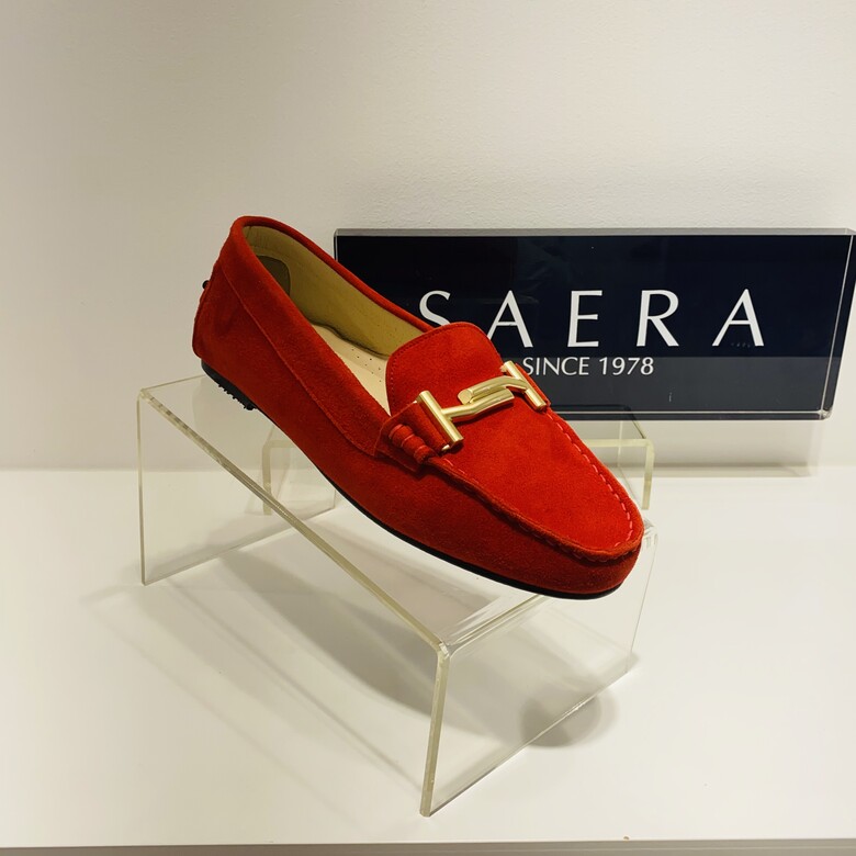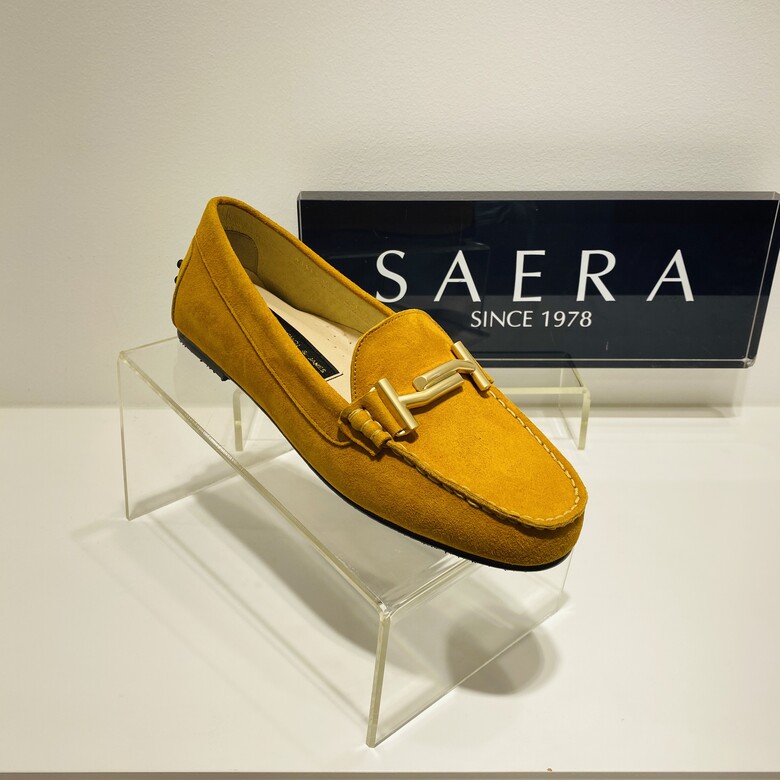 양가죽 세무 특유의 부드러움과 선명한 색감에 깔끔한 금장 포인트로
