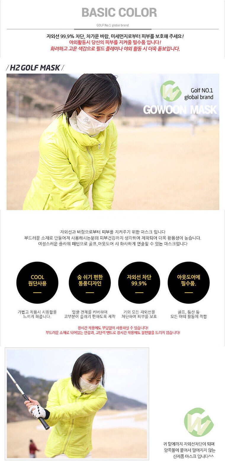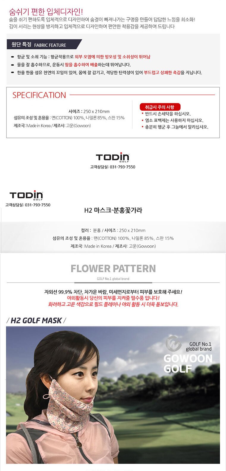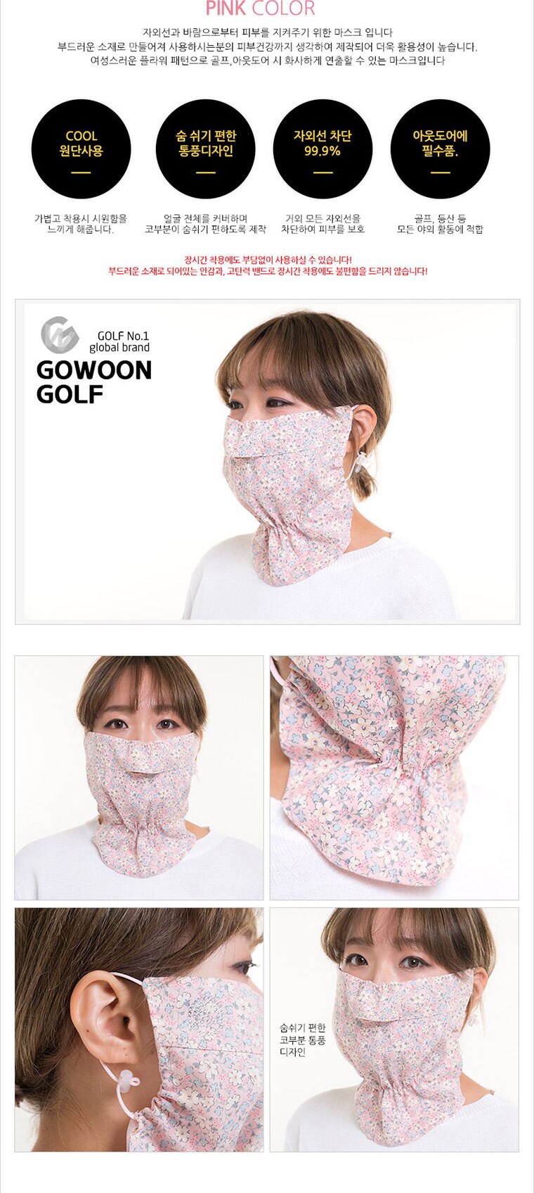 투딘 고운 H2 여성용 마스크 자외선 차단 골프마스크
