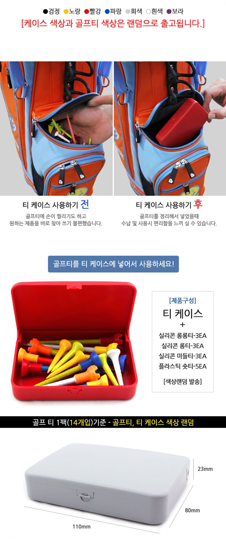 | 5. 제품 구성 | 티케이스+실리콘롱롱티3개+실리콘롱티3개+실리콘미들티3개+플라스틱숏티5개 |