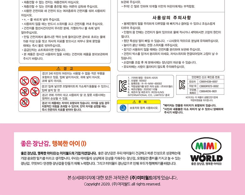 10. 취급방법 및 취급시 주의사항, 안전표시 (주의, 경고 등) | 상품상세참조 |