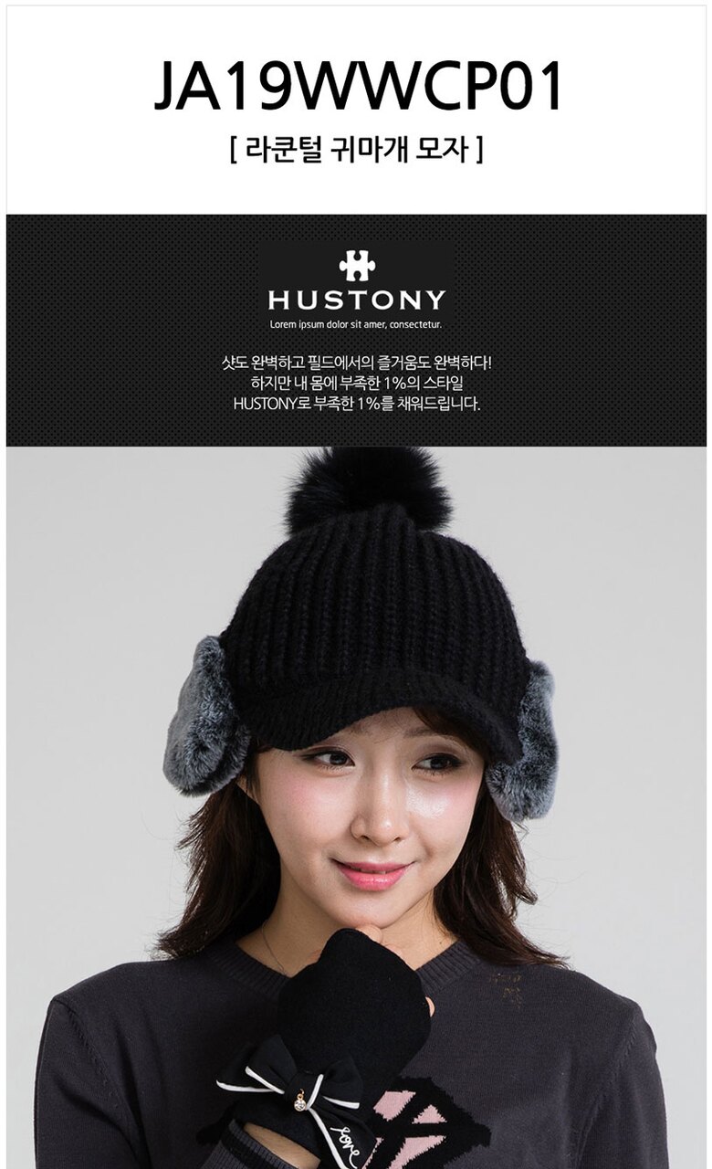 투딘 휴스토니 라쿤털 귀마개모자 여성용겨울골프모자