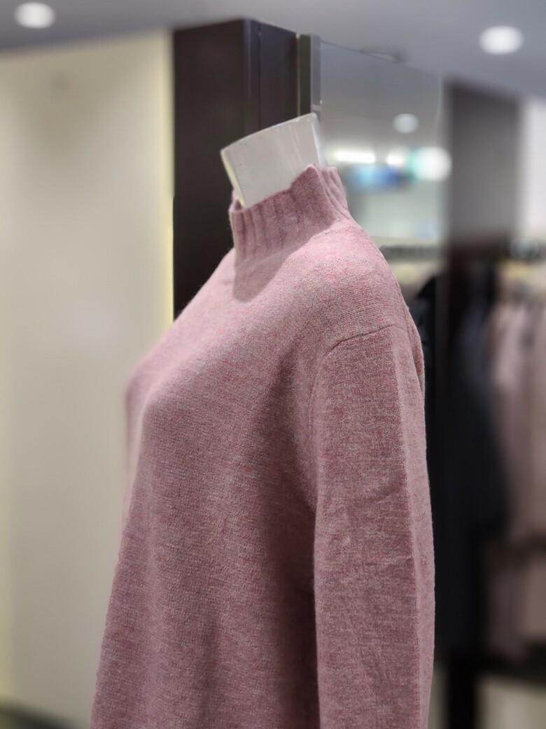 스탠다드/차이나칼라 디자인의 목폴라가 얼굴 라인을 슬림하게 연출해 주고,