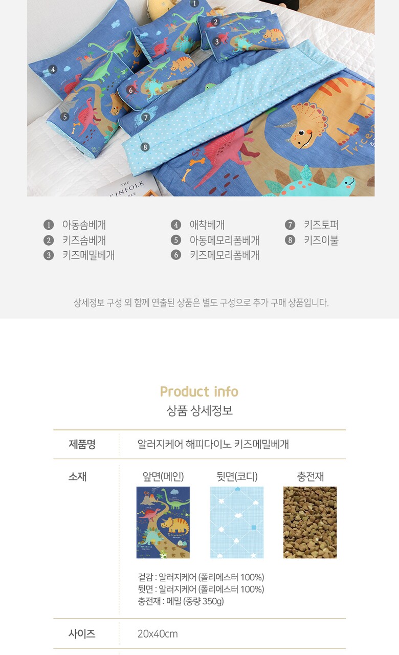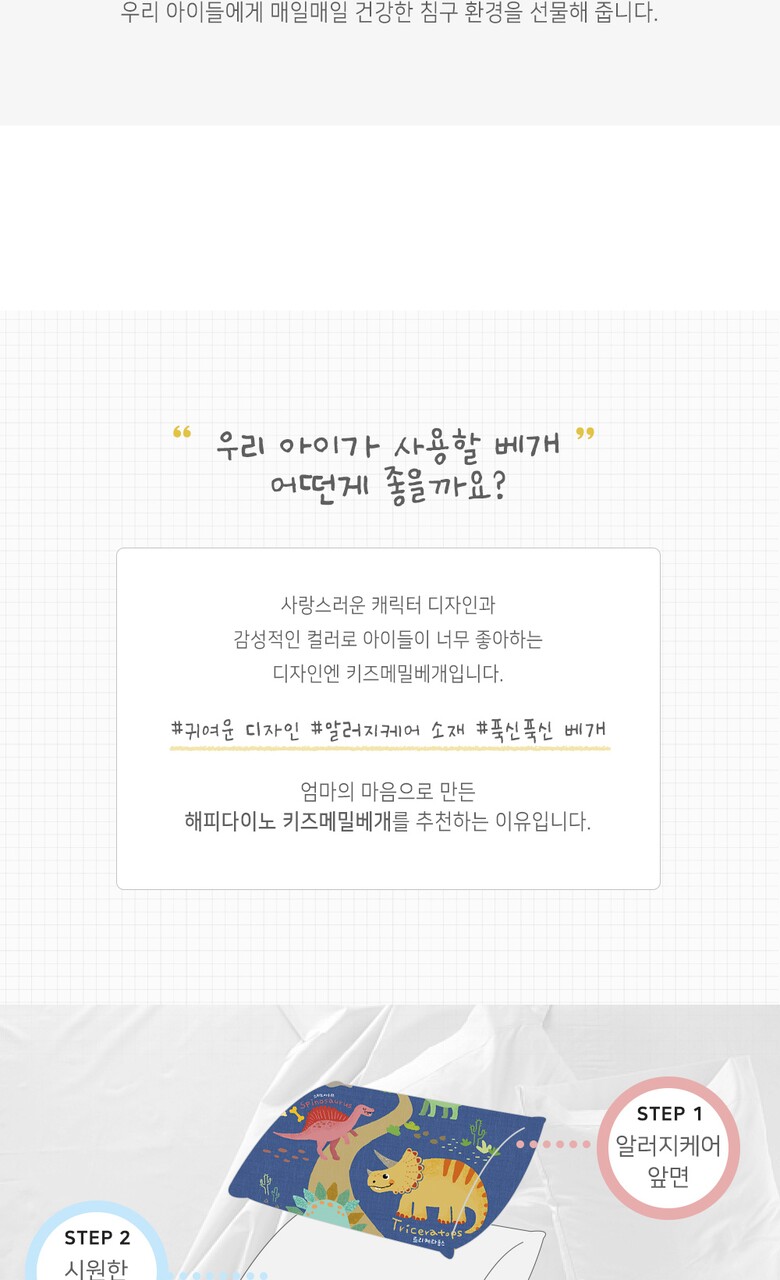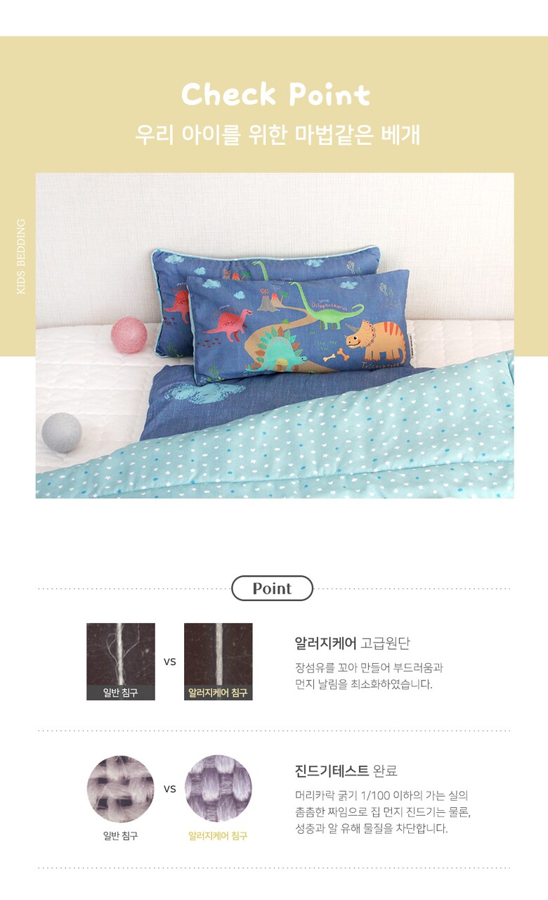 [디자인엔] 알러지케어 해피다이노 키즈메밀베개