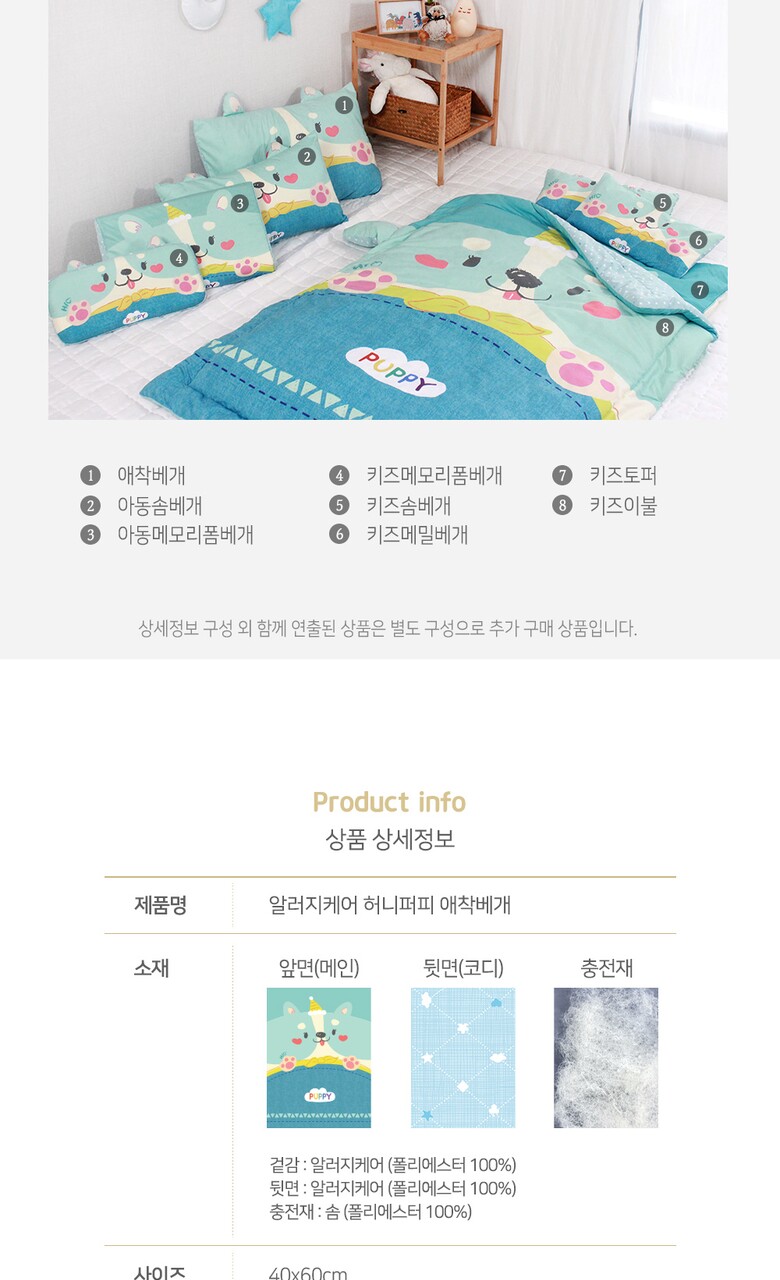 [디자인엔] 알러지케어 허니퍼피 애착베개