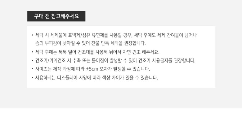 | 7. 세탁방법 및 취급시 주의사항 | 상세페이지 참조 |