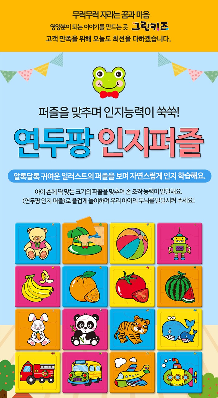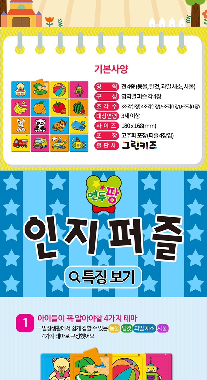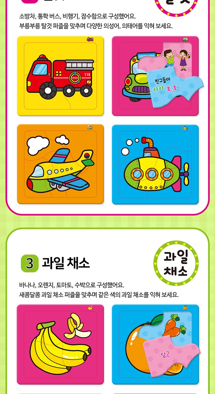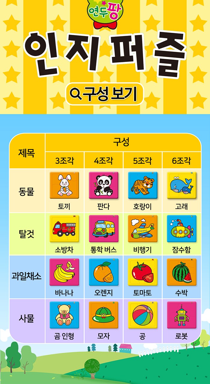 연두팡 인지퍼즐 4종(동물, 탈것, 과일채소, 사물) 택1