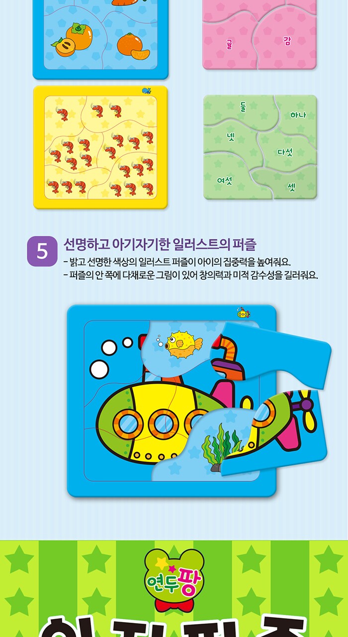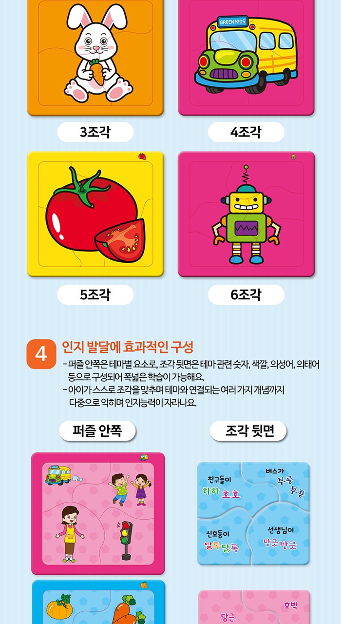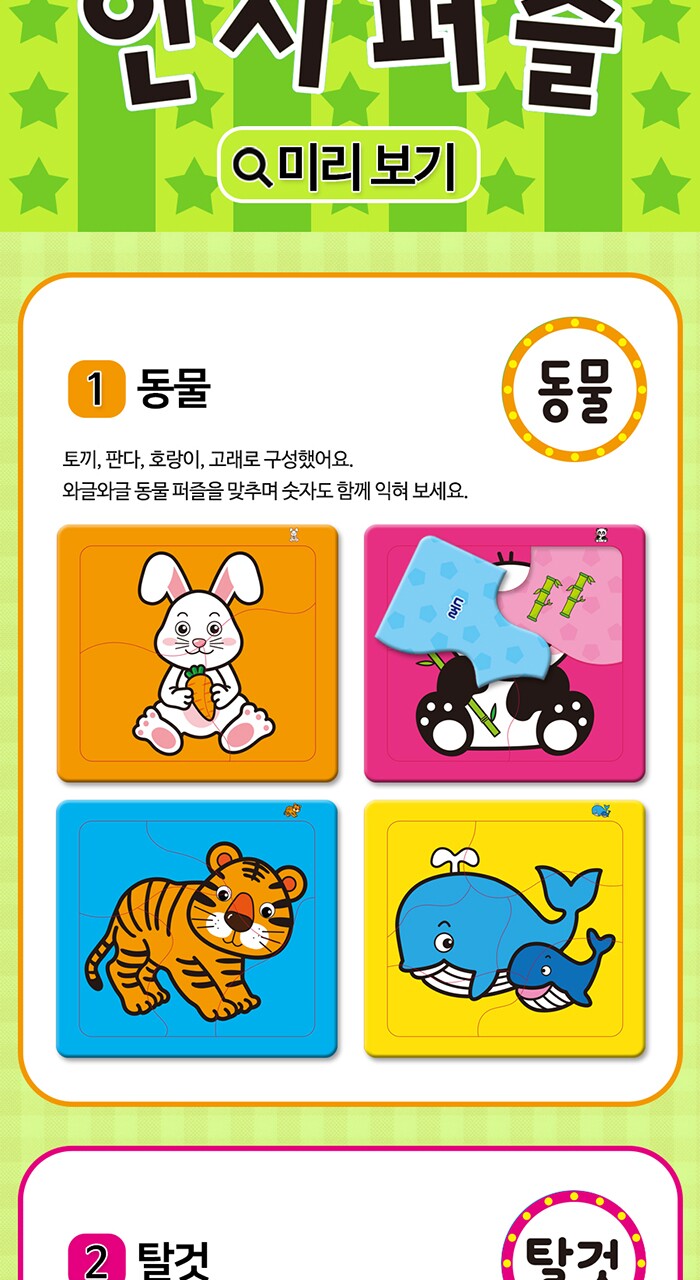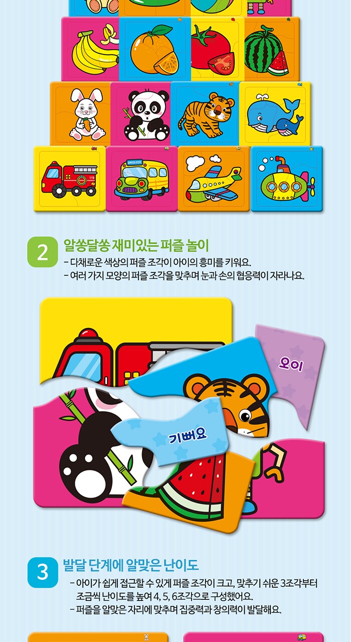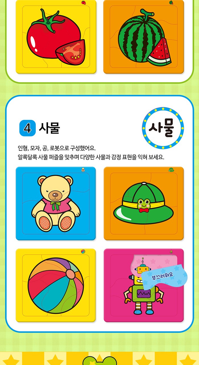 연두팡 인지퍼즐 4종(동물, 탈것, 과일채소, 사물) 택1