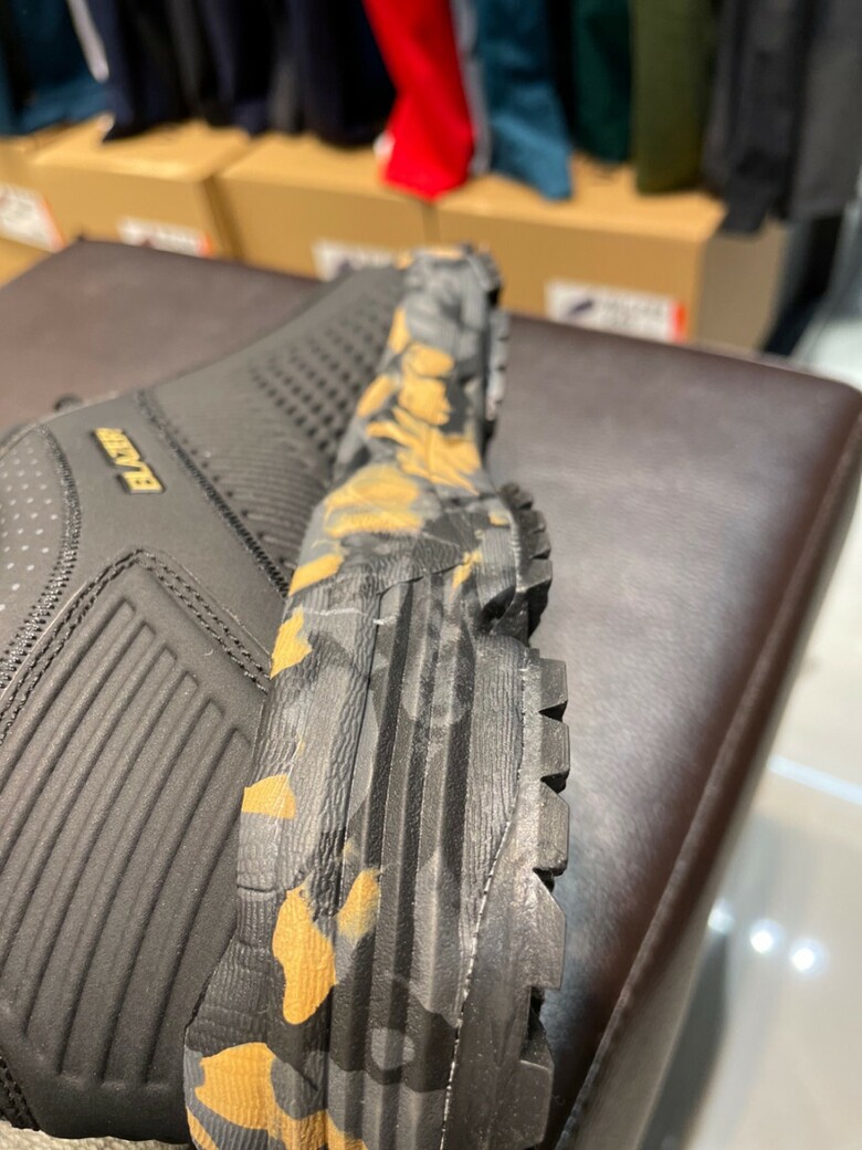 카모플라쥬 패턴을 미드솔에 적용하여 스타일리시한 디자인
