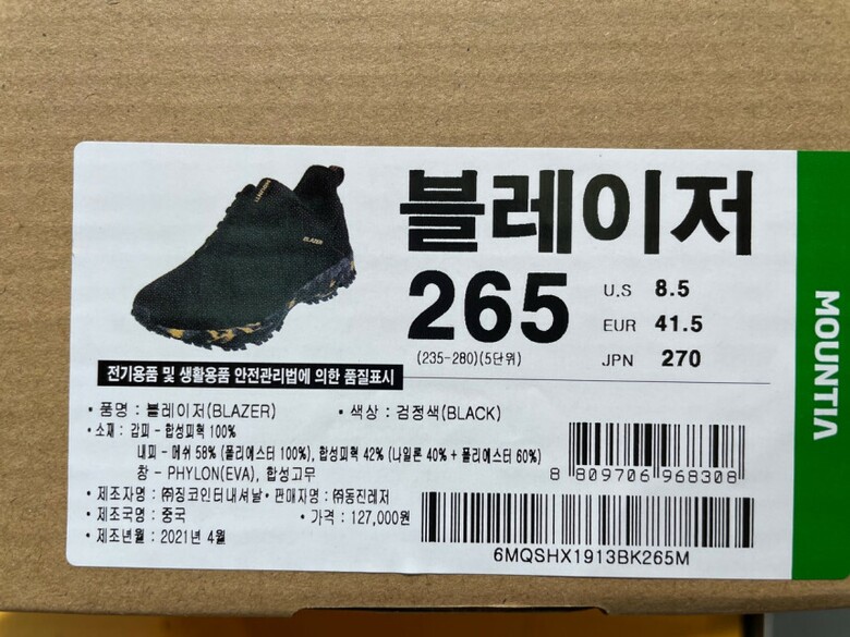 갑피에 내구성과 경량성이 좋은 신세틱 소재를 적용하여 무게 254g으로 중량이 가벼운 워킹화