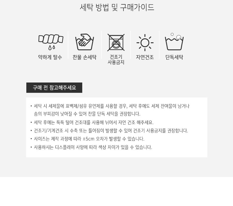 | 7. 세탁방법 및 취급시 주의사항 | 상세페이지 참조 |