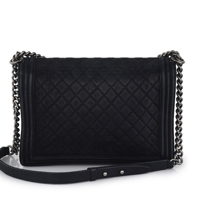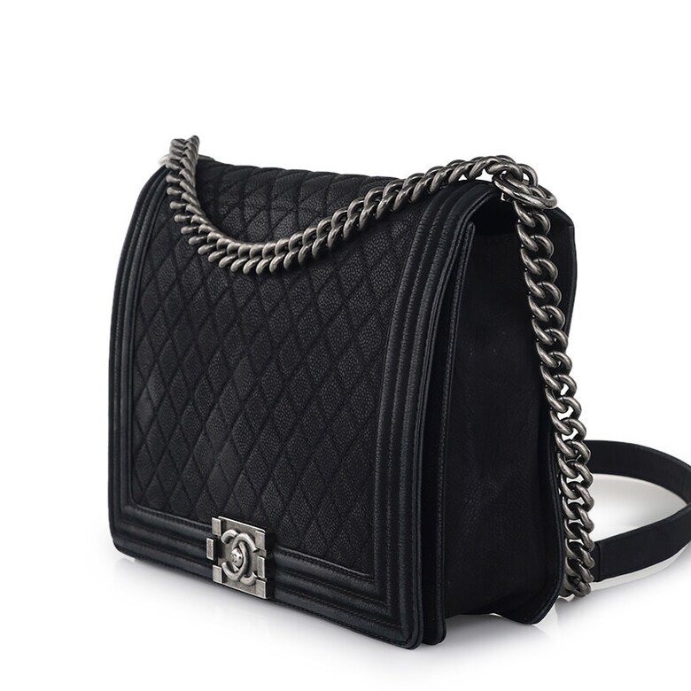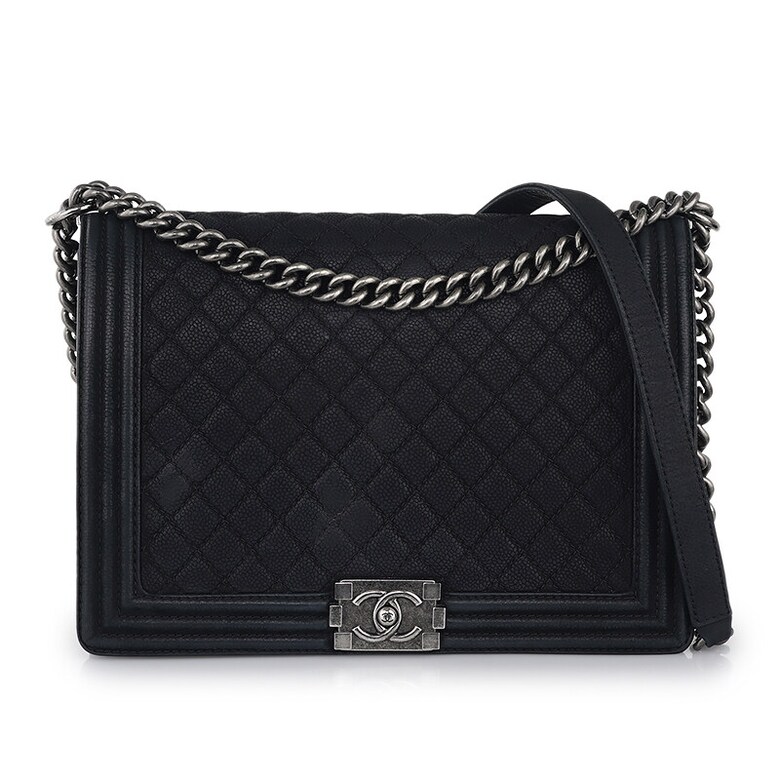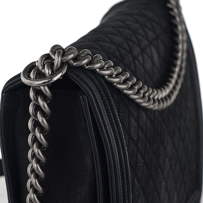 [중고명품] 샤넬 블랙 캐비어 보이 플랩 흑장 체인 라지 숄더백