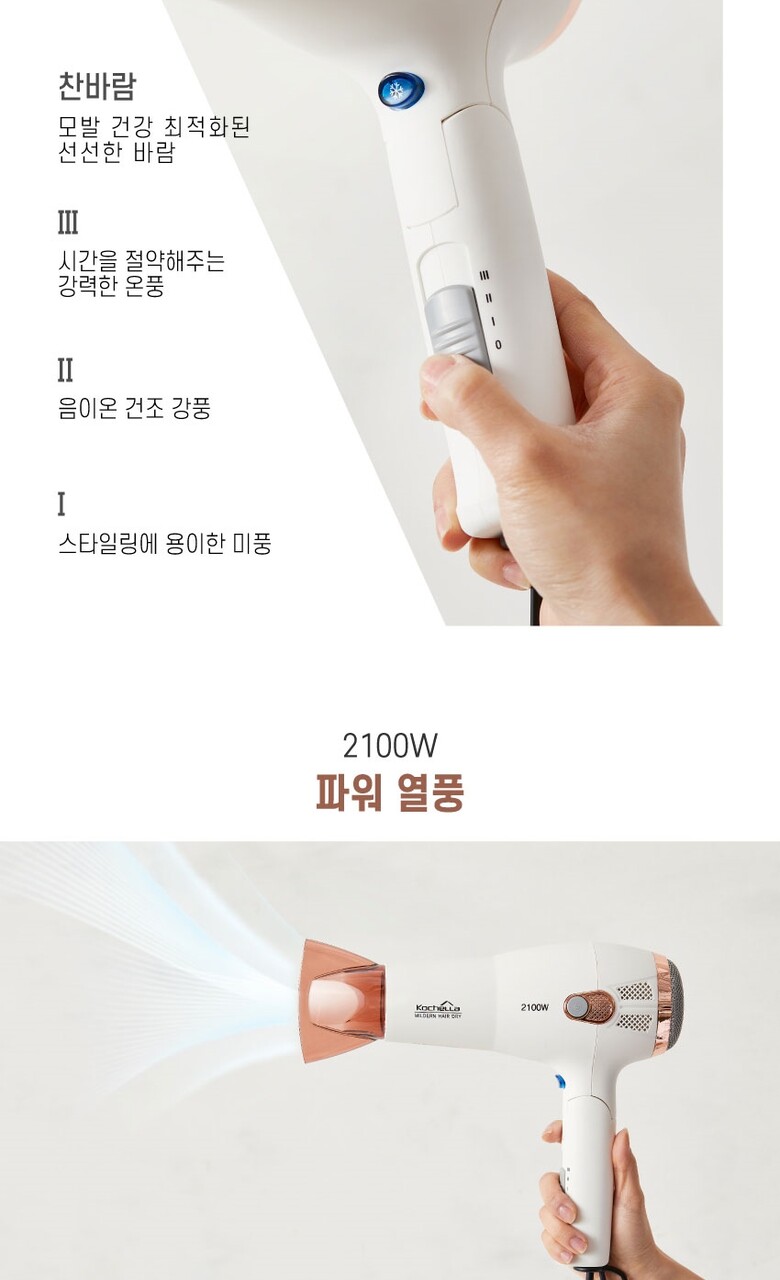• 2100w 라고해서 기대했는데 디자인은 마음에 듭니다. 냉풍은 누르고 있어야 하며 바로 냉풍이 나오지는 않네요