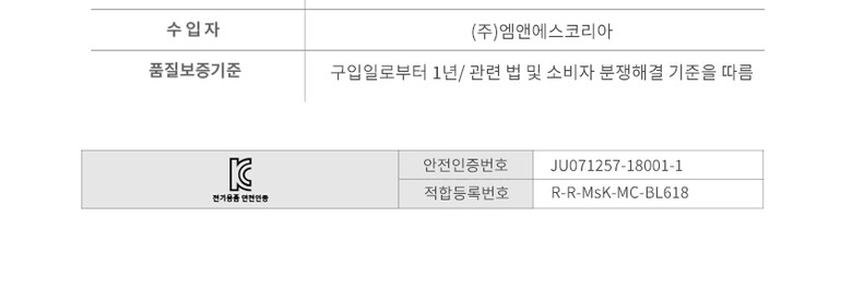 8. 제조사(수입자) | 상세페이지 참조 |