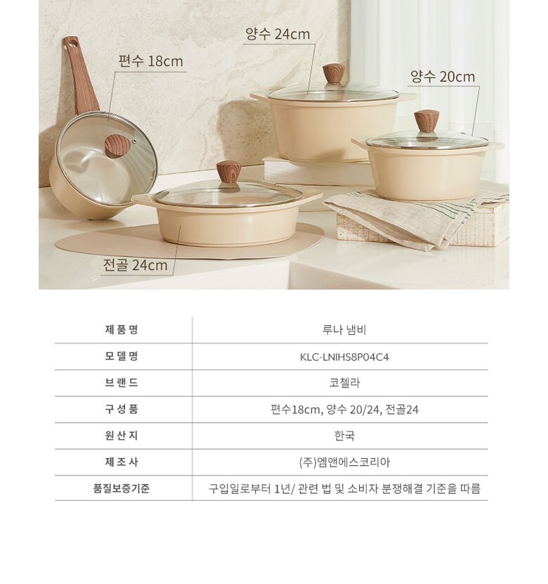코첼라 루나 세라믹 냄비 4종세트(편수18cm, 양수 20, 24cm, 전골24cm)
