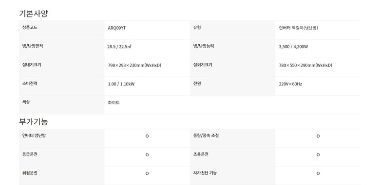 [캐리어/ARQ09YT] 벽걸이에어컨 09형 인버터 냉난방기 화이트 전국/기본설치무료
