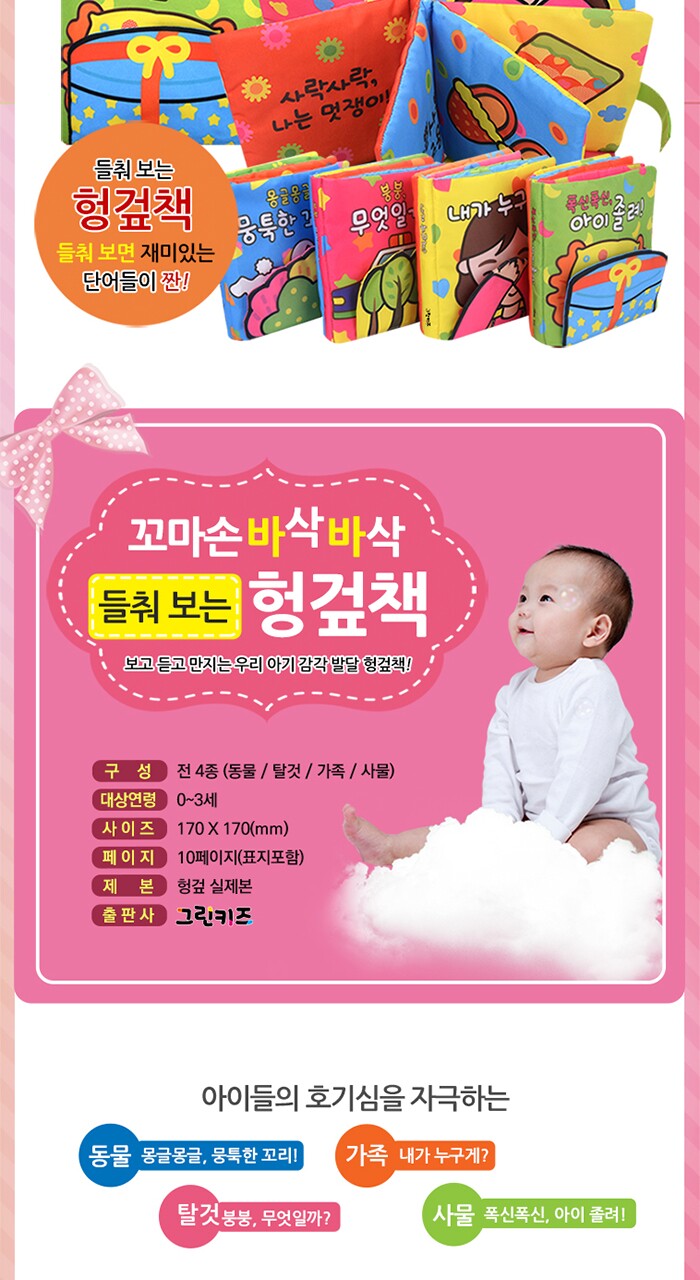 꼬마손 바삭바삭 들춰보는 헝겊책(대형사이즈) 4종중 택1