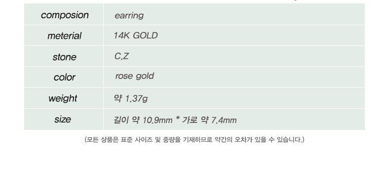 14K 큐빅 물방울 원터치 귀걸이 GI14EE299
