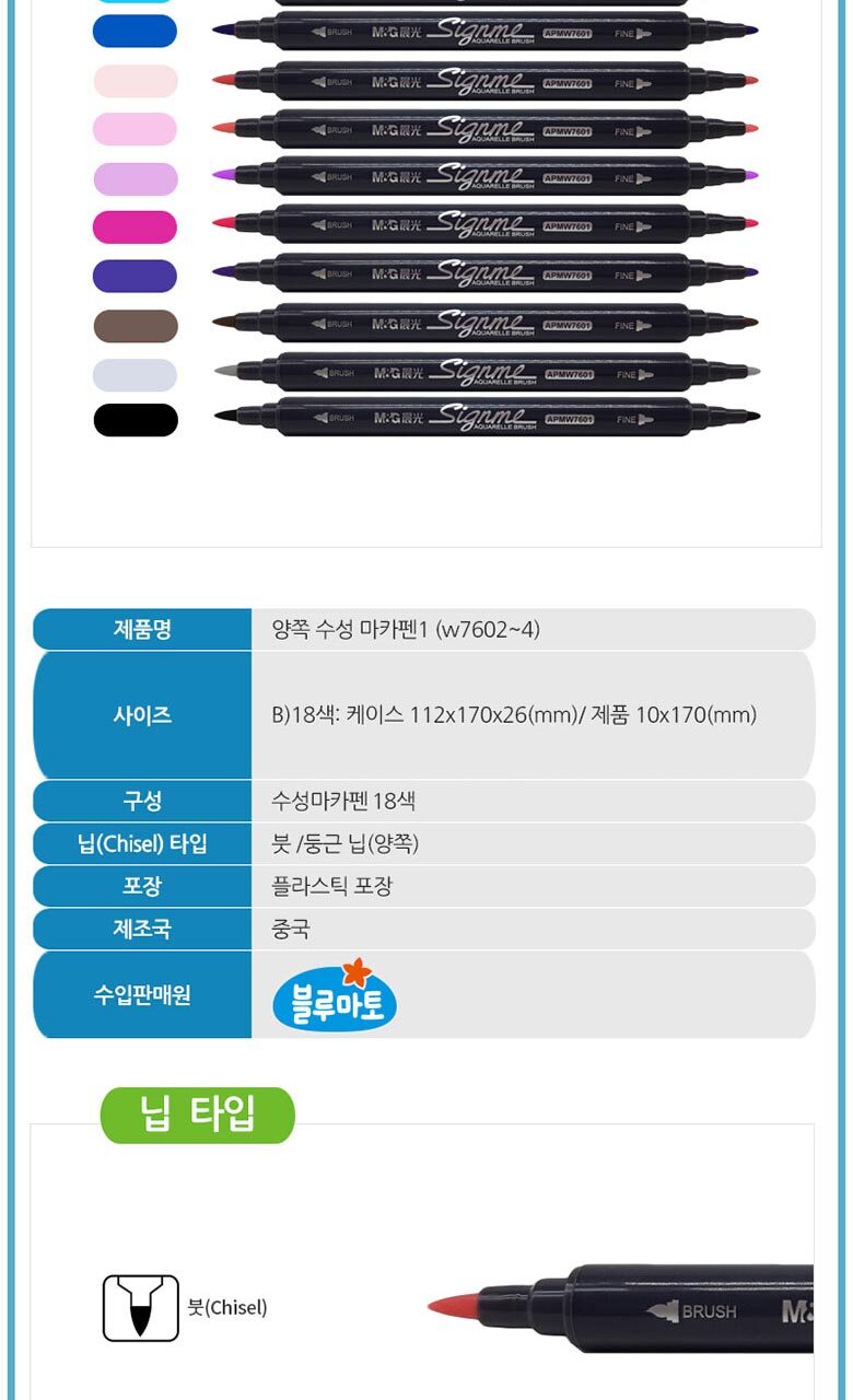 [블루마토]양쪽 수성마카펜1-B [W7603] /18색세트