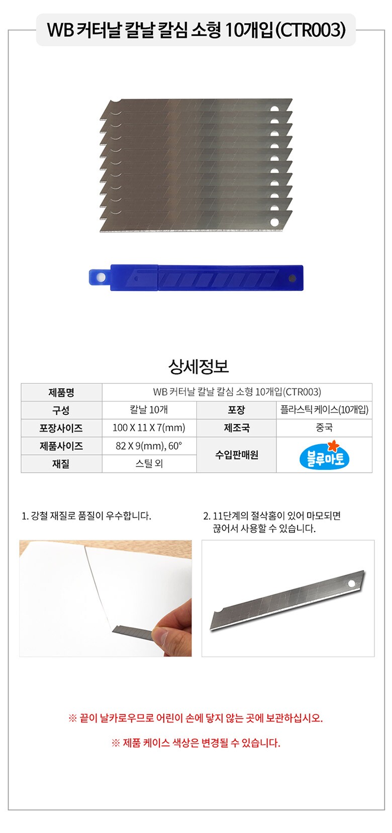 [블루마토] WB 커터날 칼날 칼심 소형 10개입(CTR003) 10세트