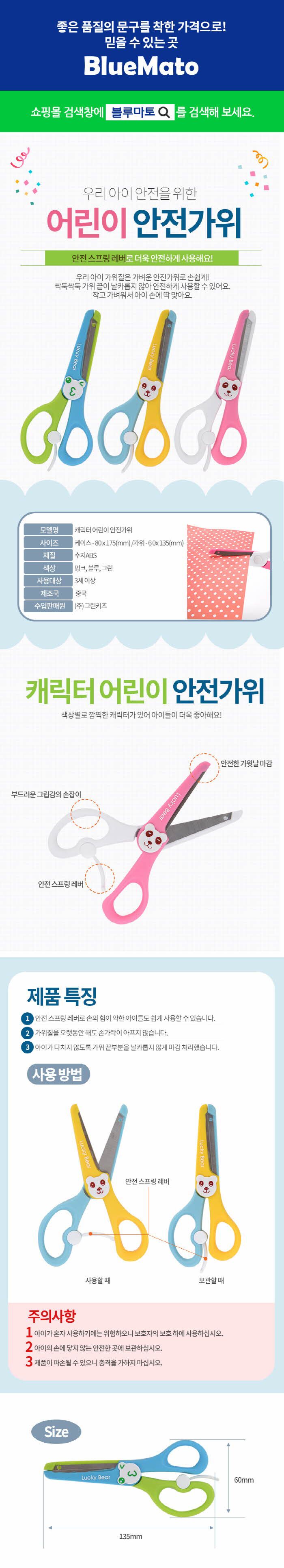 [블루마토] 캐릭터 안전가위1 /3색(핑크/블루/그린)랜덤 -중국어표시(개별opp포장)