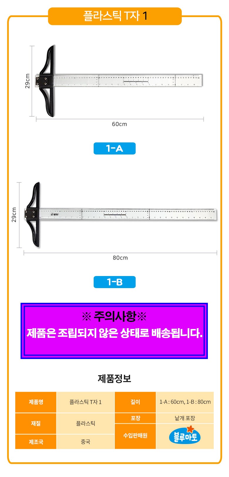 [블루마토] 플라스틱 T자1-B / 80cm*29cm/(자-플라스틱,상단헤드-플라스틱)