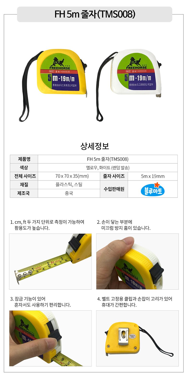 [블루마토] FH 5m 줄자(TMS008) (색상랜덤)