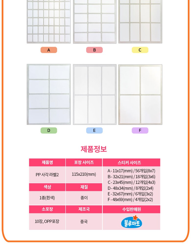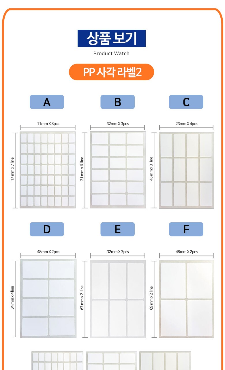 PP사각라벨2 (10P) 백색(단품) -6종 선택