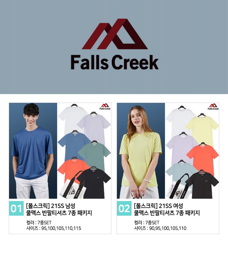 폴스크릭 21SS 남여 쿨맥스 반팔티셔츠 7종 패키지