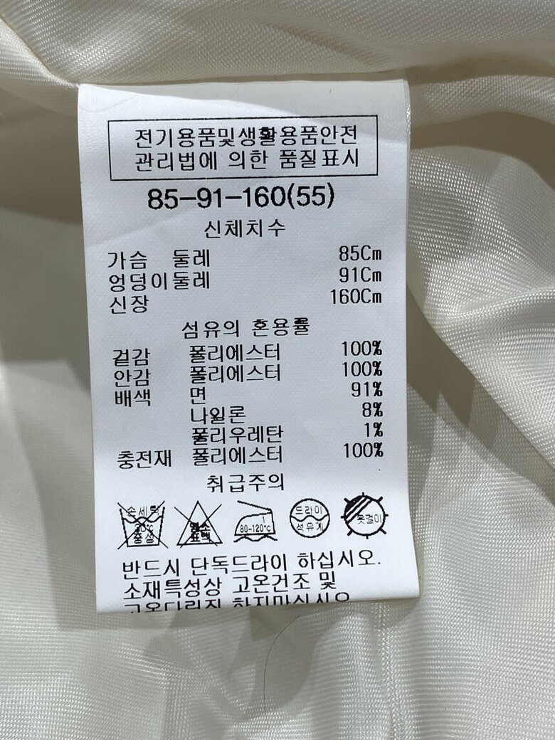 | 1. 제품 소재 (섬유의 조성 또는 혼용률을 백분율로 표시, 기능성인 경우 성적서 또는 허가서) | 겉감:폴리에스테르 100% / 안감:폴리에스테르 100% / 배색:면 91%, |