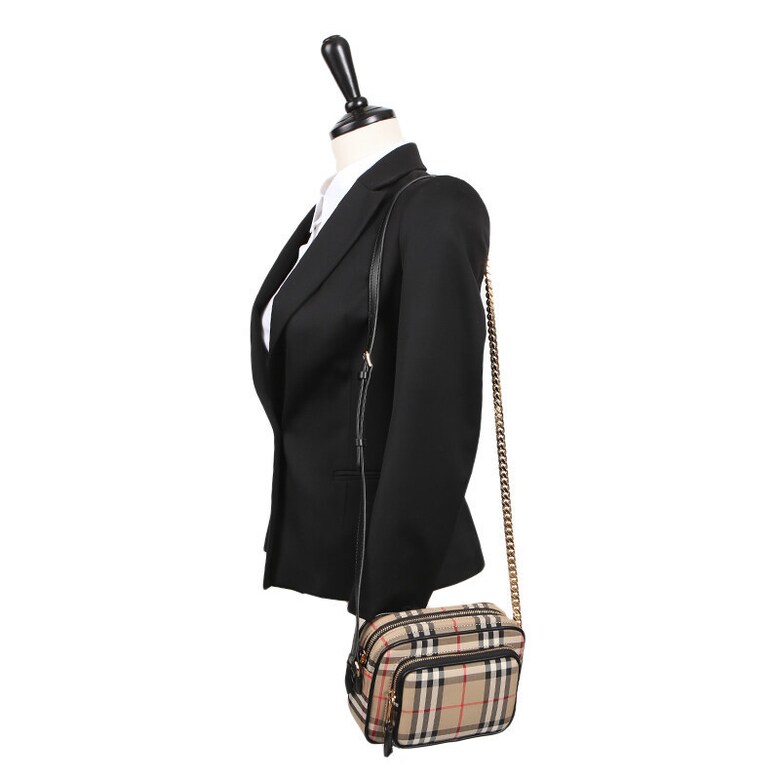 [중고명품] 버버리 베이지 빈티지 체크 카메라 스몰 크로스백