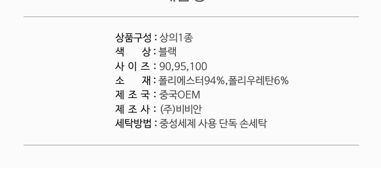 1. 제품 소재 (섬유의 조성 또는 혼용률을 백분율로 표시, 기능성인 경우 성적서 또는 허가서) | 폴리에스터94%,폴리우레탄6% |