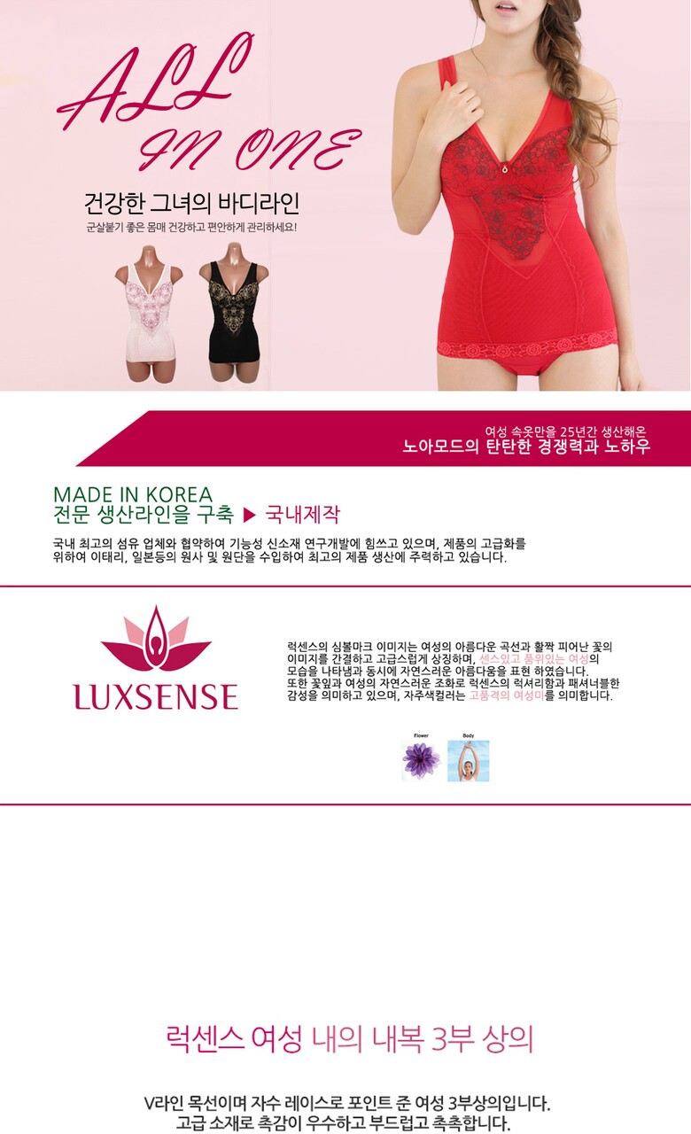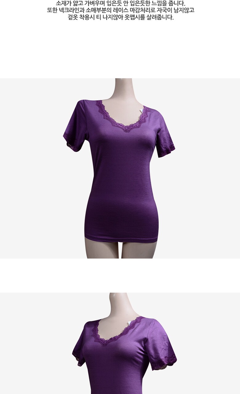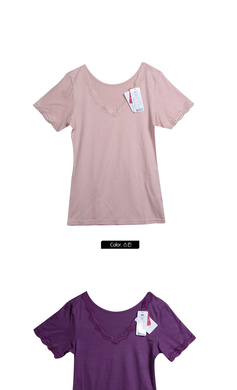 (럭센스)목라인 레이스 여성내의 3부상의