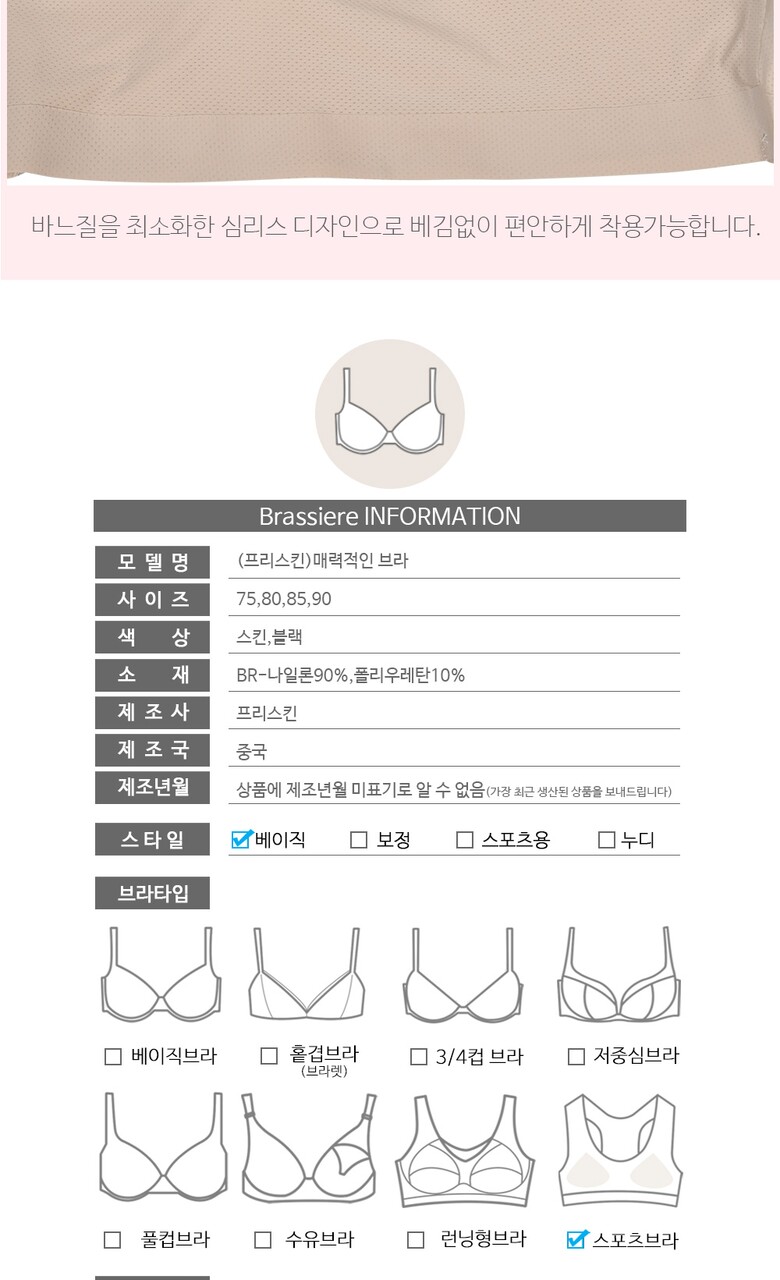 [프리스킨]매력적인 심리스 스포츠 캡내장 브라