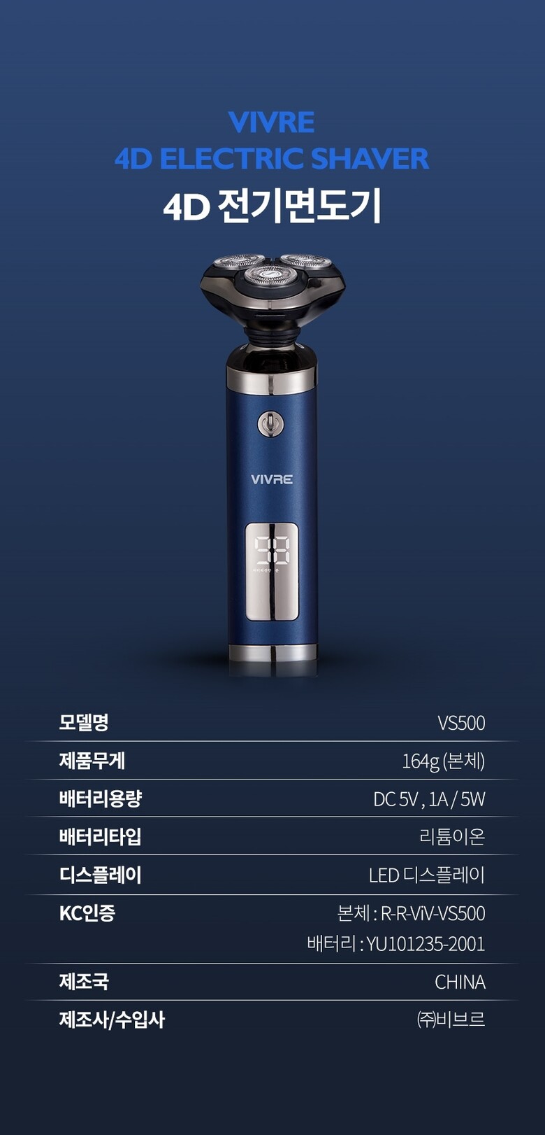 비브르 4D 전기면도기 VS500