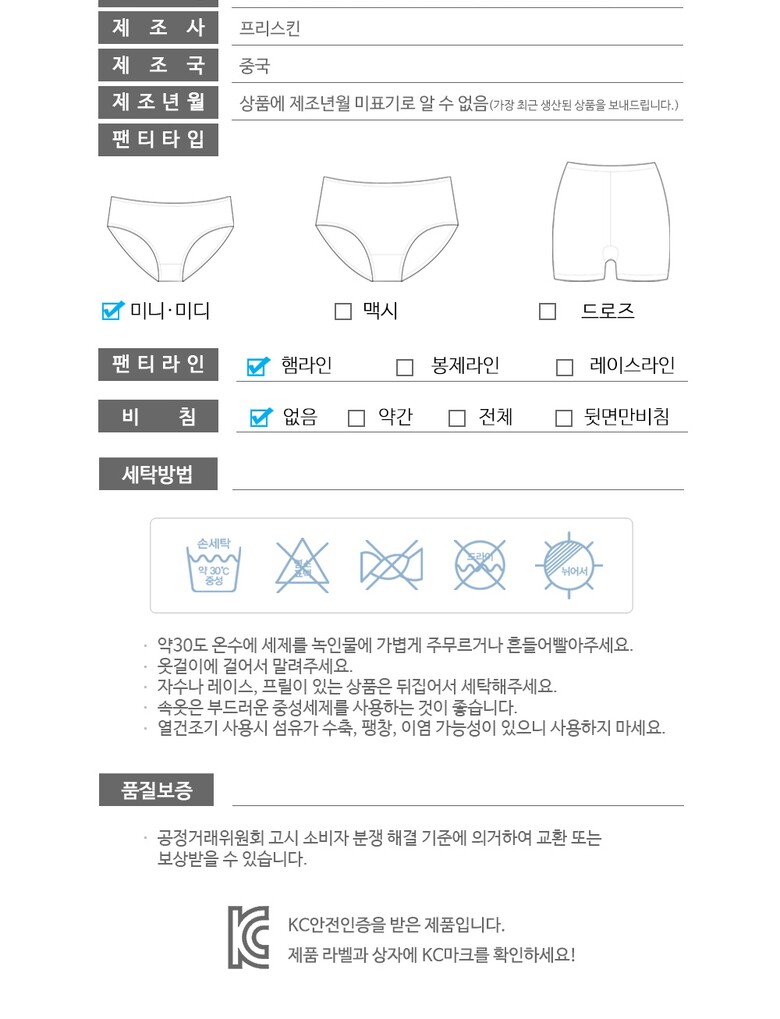 | 6. 세탁방법 및 취급시 주의사항 | 30도 온수로 중성세제를 사용하여 손세탁 및 분리세탁을 권장합니다. |
