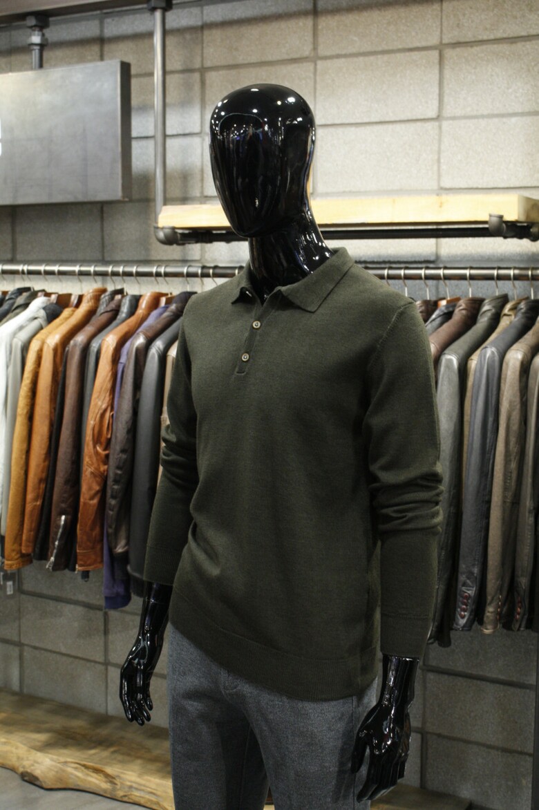 촉감좋은 이태리산 메리노울100% 카라니트입니다