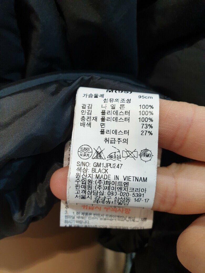 1. 제품 소재 (섬유의 조성 또는 혼용률을 백분율로 표시, 기능성인 경우 성적서 또는 허가서) 나일론 100% / 안감:폴리에스테르 100% / 배색:면 73%, 폴리에스테르