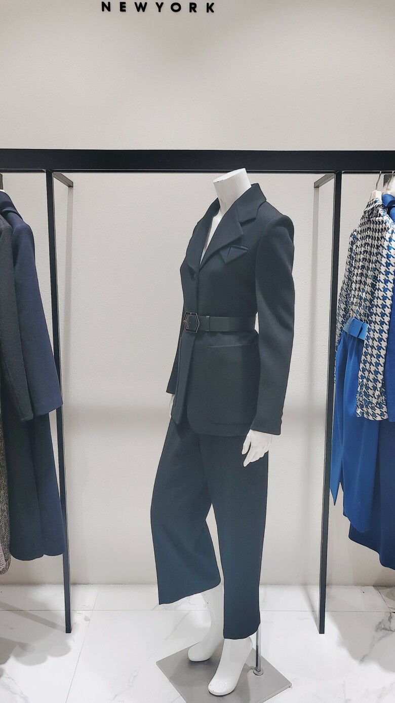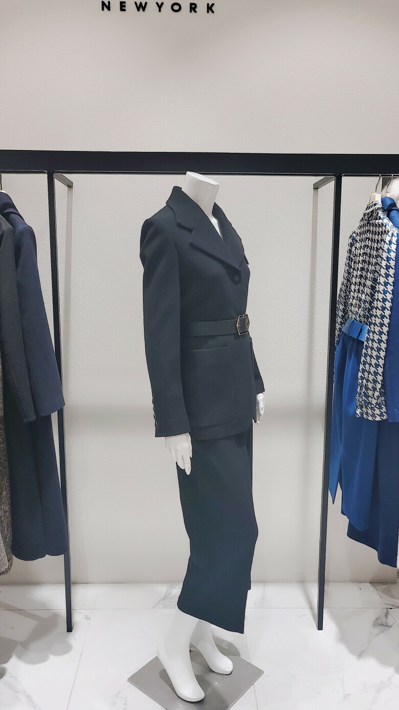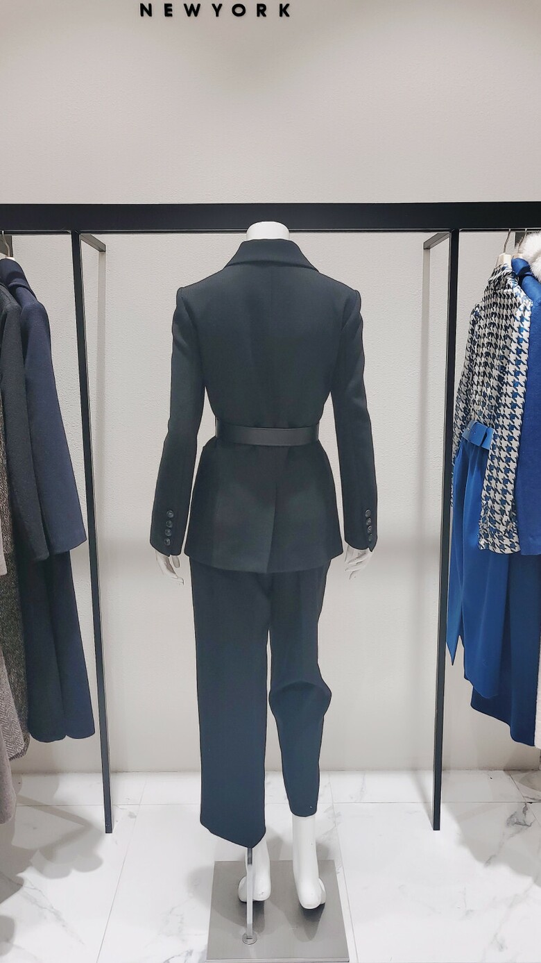 원버튼 벨티드 슬림 자켓 와이드슬랙스 셋업입니다.