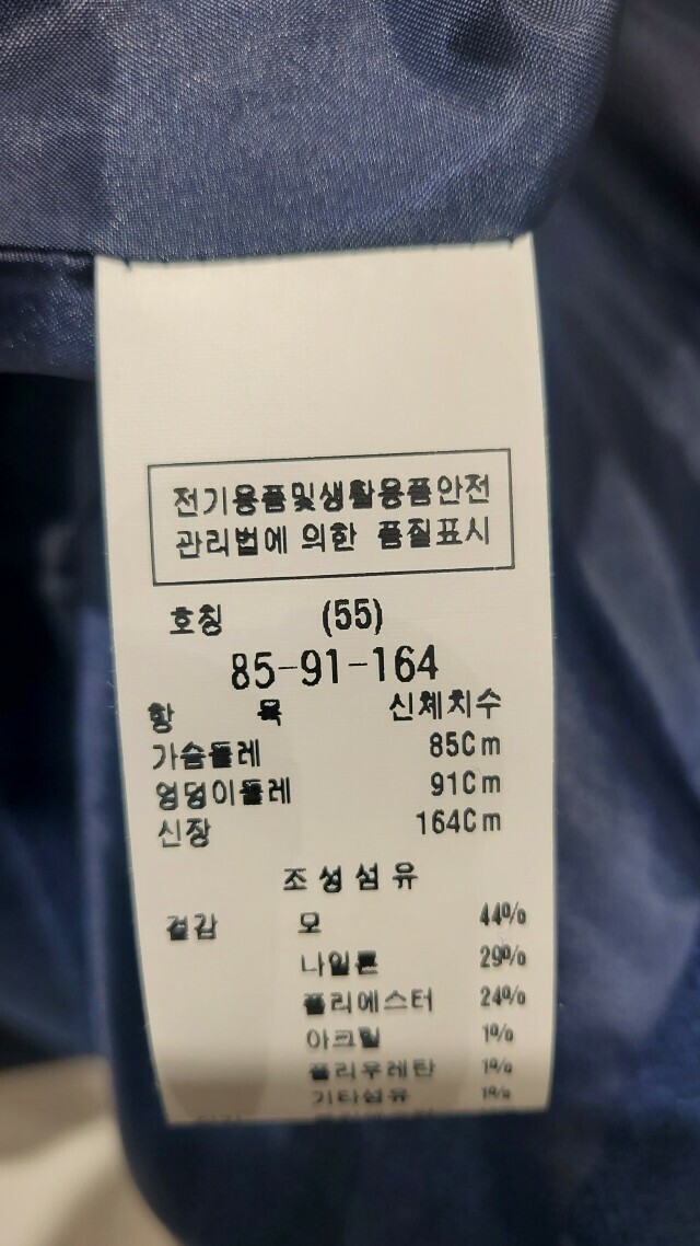 1. 제품 소재 (섬유의 조성 또는 혼용률을 백분율로 표시, 기능성인 경우 성적서 또는 허가서) 모 44%, 나일론 29%, 폴리에스테르 24%, 아크릴 1%, 우레탄 1%