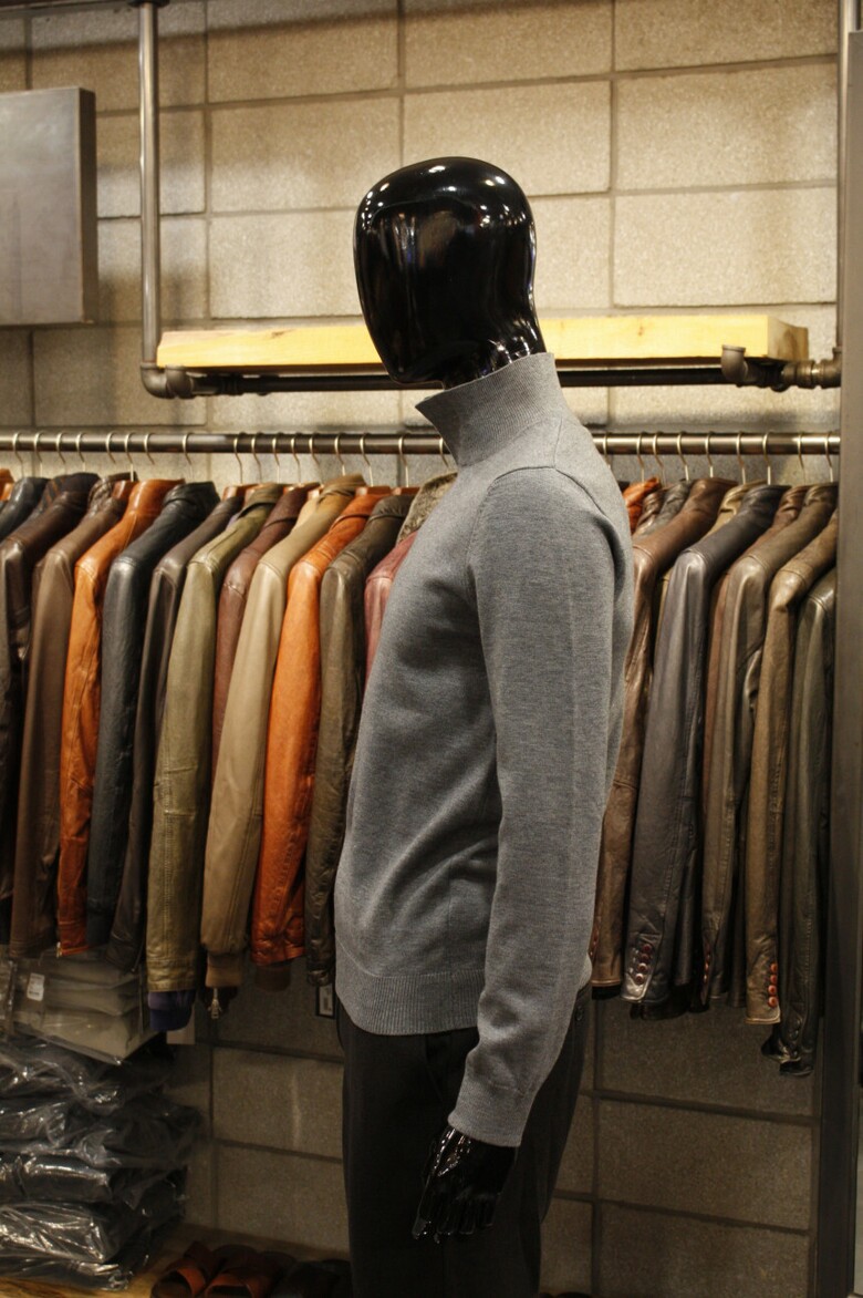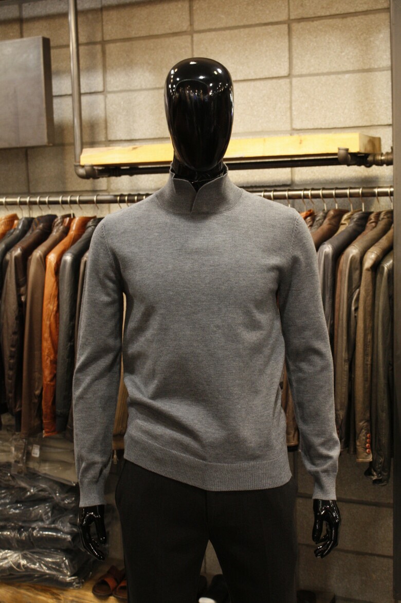 슬릿이 있는 하이넥디자인으로 유니크한 하이넥절개니트입니다