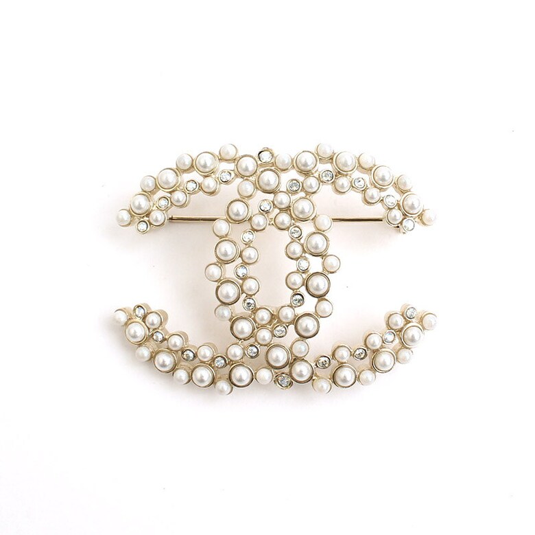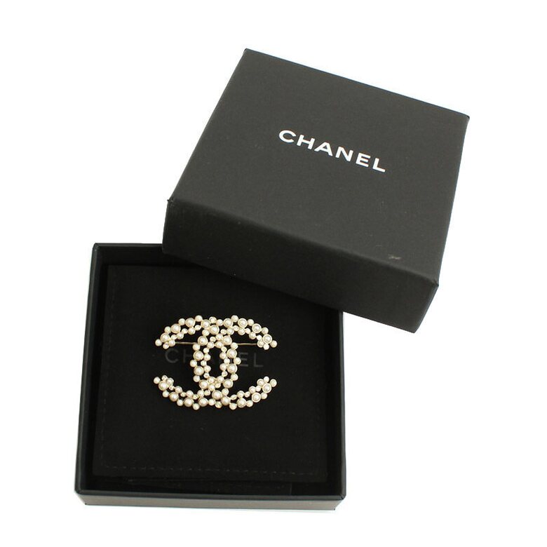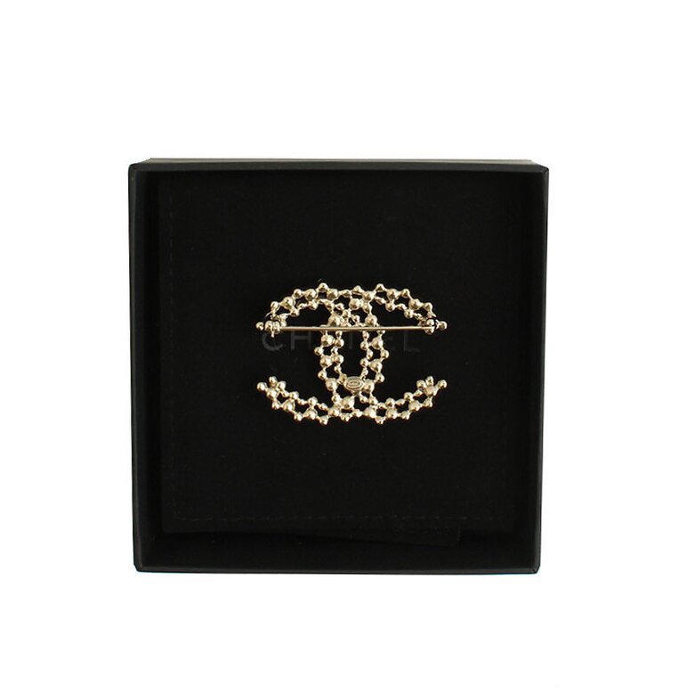 샤넬의 마이크로 펄 로고 금장 브로치입니다.