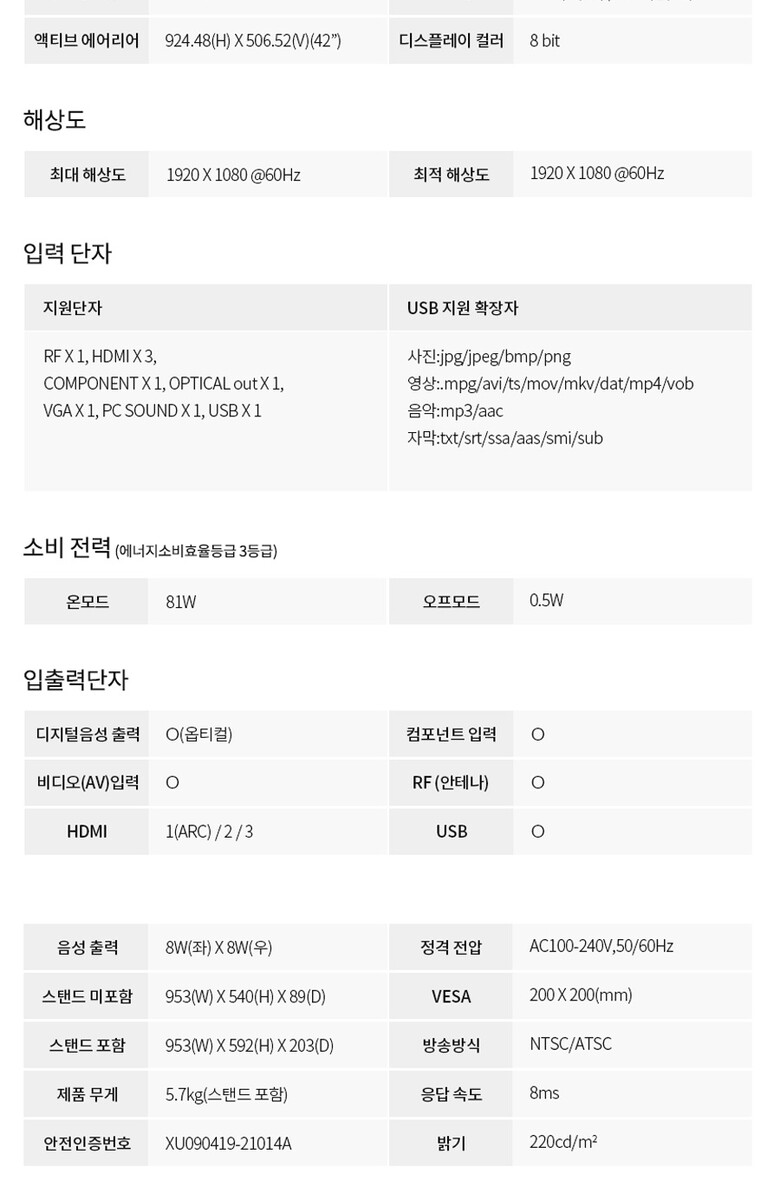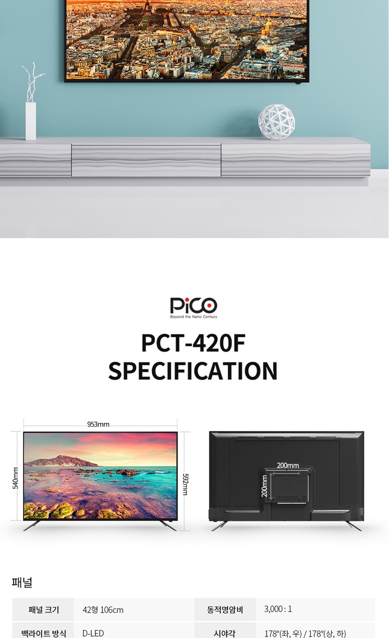 PICO PCT-420F 106cm(42인치) FHD TV 광시야각 벽걸이형 설치