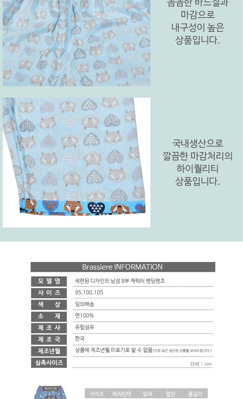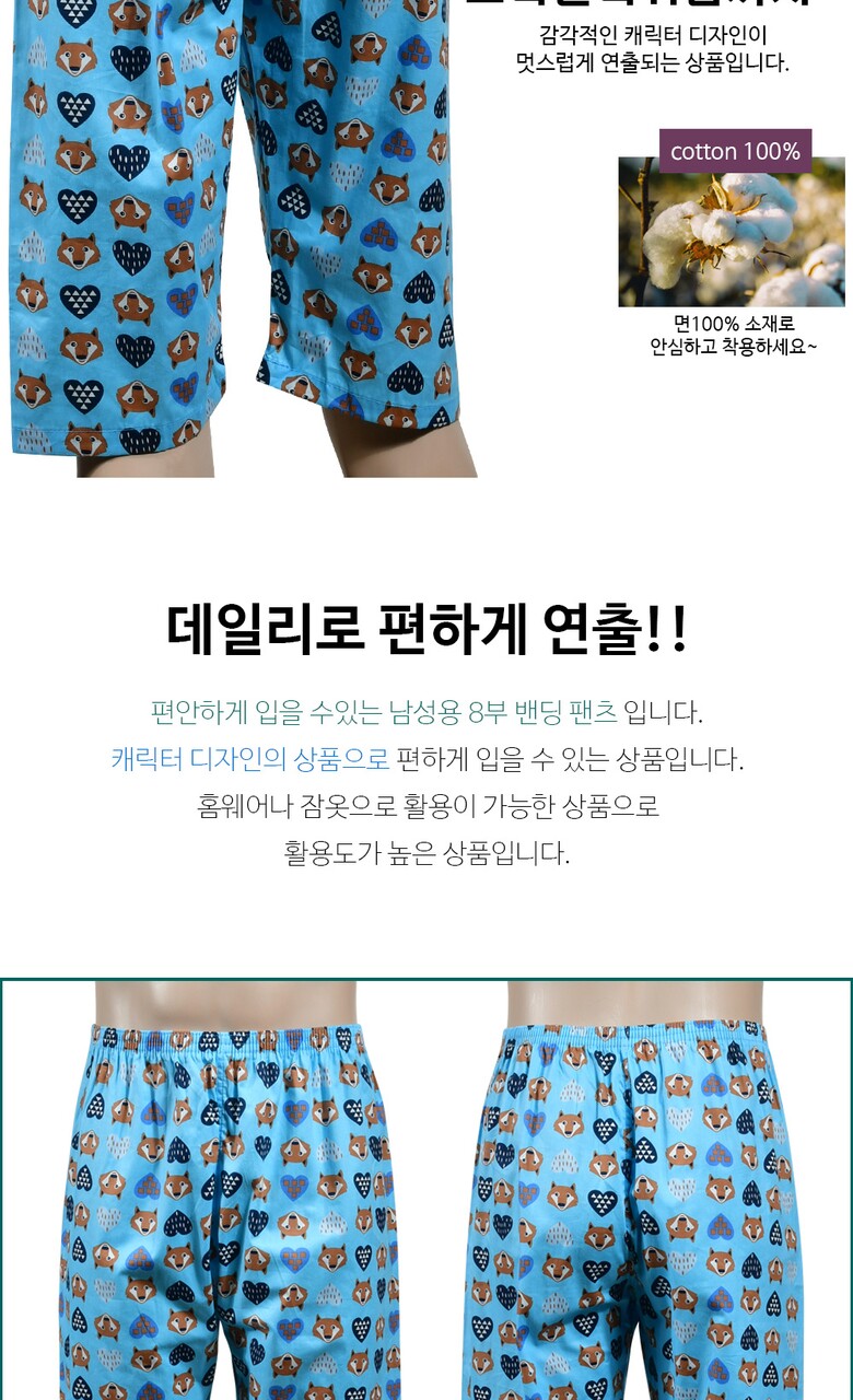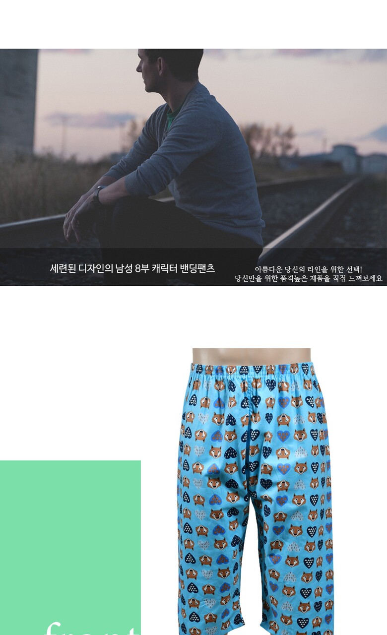 [슬레진저]세련된 남성 8부캐릭터 밴딩팬츠