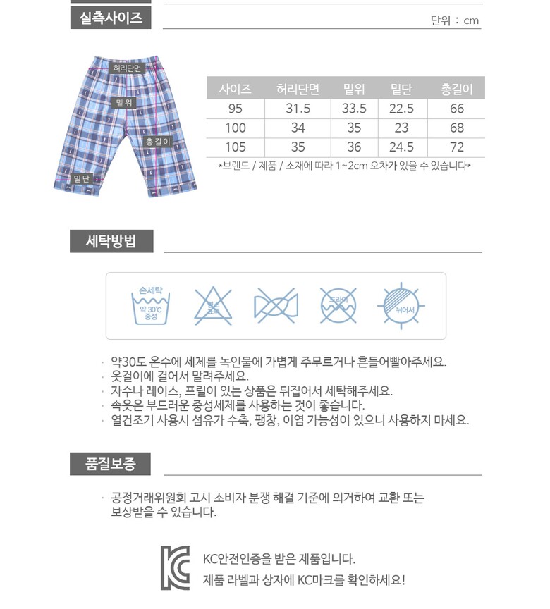 6. 세탁방법 및 취급시 주의사항 30도 온수로 중성세제를 사용하여 손세탁 및 분리세탁을 권장합니다.