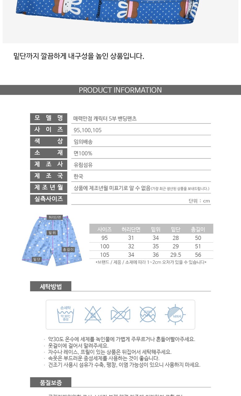 6. 세탁방법 및 취급시 주의사항 30도 온수로 중성세제를 사용하여 손세탁 및 분리세탁을 권장합니다.