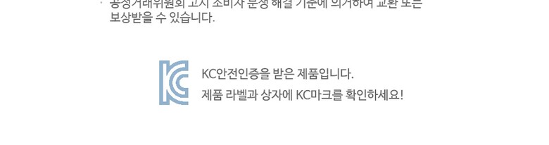 • 표시/광고와 상이, 제품 하자의 경우 수령 후 3개월 이내, 또는 그 사실을 안 날로부터 30일 이내 교환/반품 가능합니다.