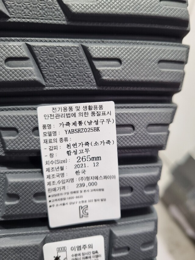 1. 제품 소재 (운동화인 경우에는 겉감, 안감을 구분하여 표시) 소가죽