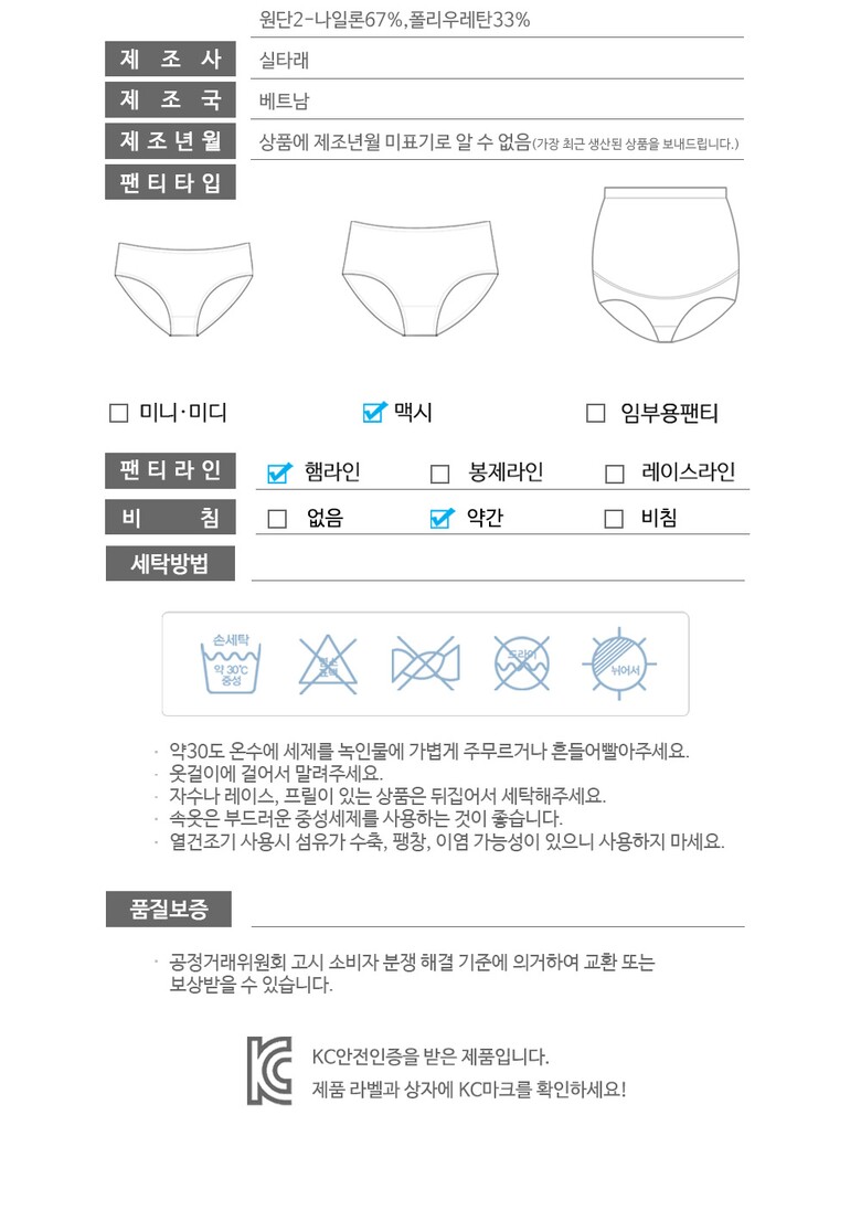 | 6. 세탁방법 및 취급시 주의사항 | 30도온수로 중성세제를 사용하여 손세탁 및 분리세탁을 권장합니다. |