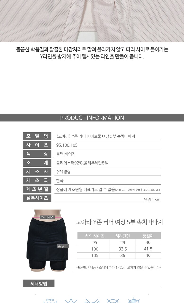 [고아라] Y존 커버 에어로쿨 소재 여성 5부 속치마바지